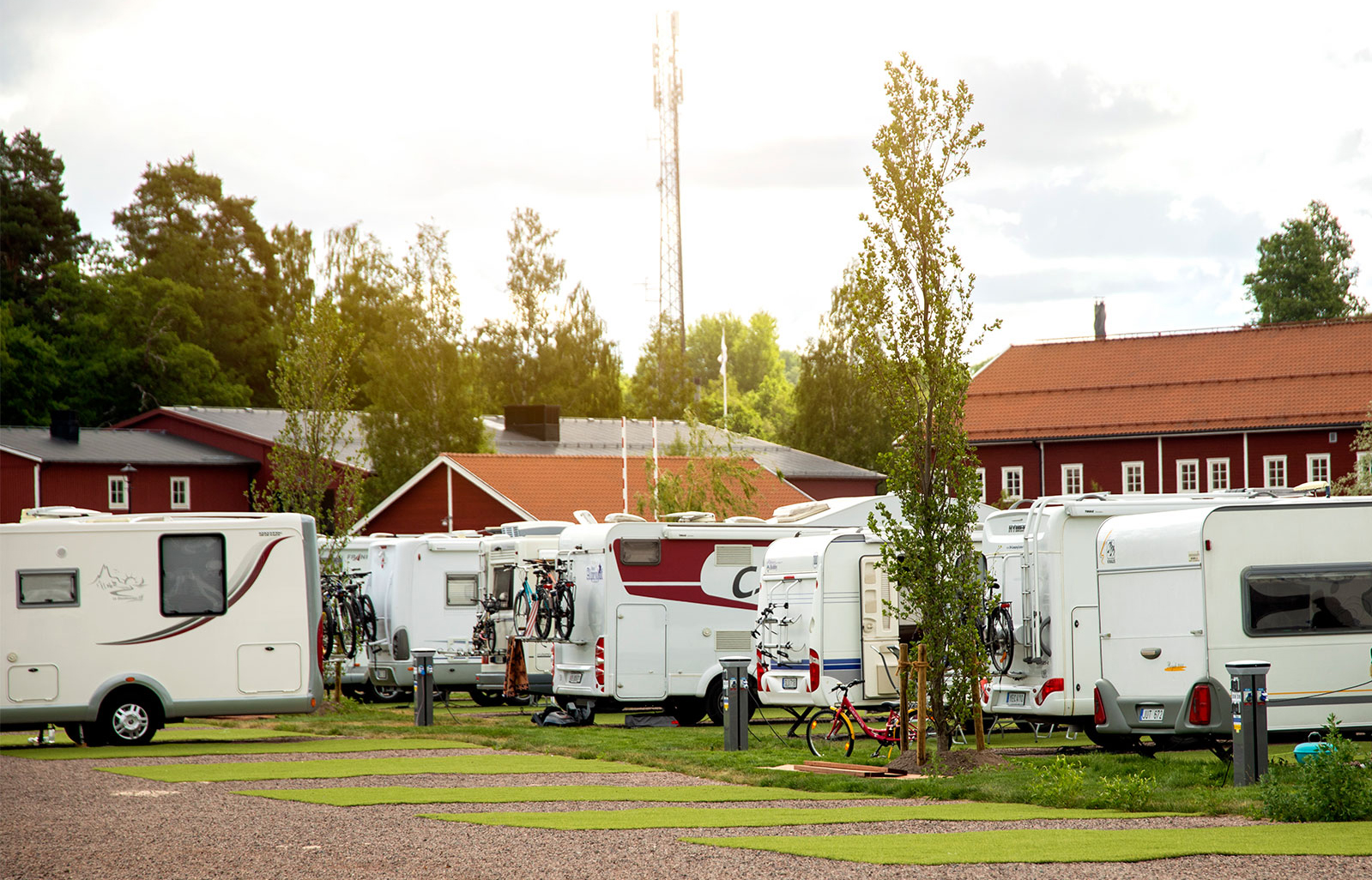 El, Wi-Fi och tillgång till servicehuset inklusive varmvatten ingår i dygnsavgiften. Alla platser är 7 meter breda och har ett djup på 10 meter, har du ett längre ekipage som kräver större plats vänligen kontakta bokningen så hjälper de dig att hitta en lämplig plats.