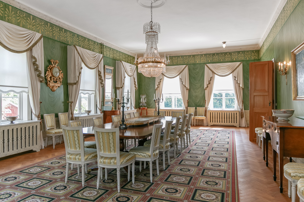 Frukosten serveras i Storebro Herrgårdens frukostmatsal.