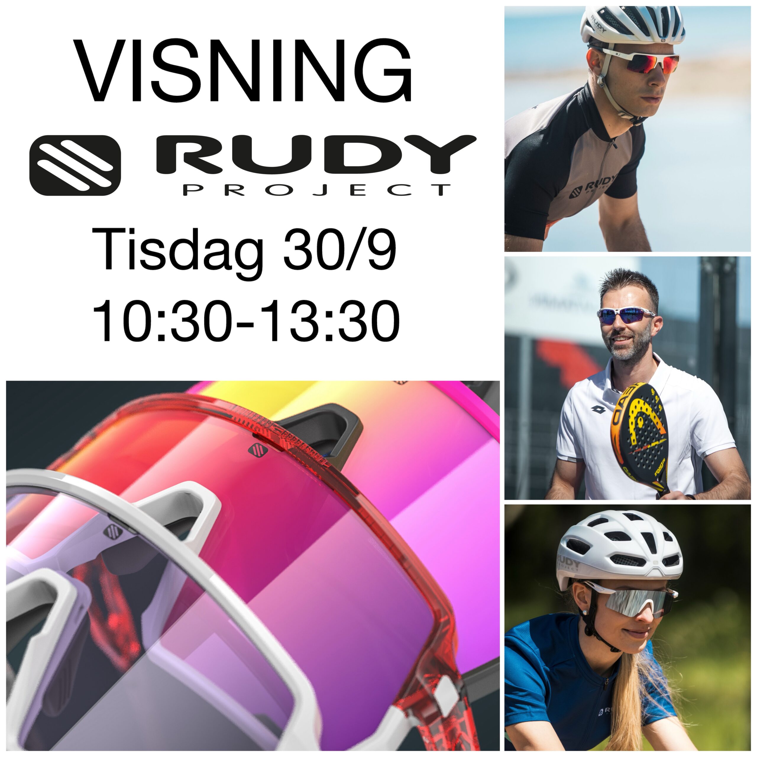 Rudy Project kommer och visar sin kollektion med sportglasögon. Vare sig du behöver slipade glas eller inte när du cyklar, springer, spelar tennis eller åker skidor, så har Rudy Project något som passar. Välkommen in och testa!