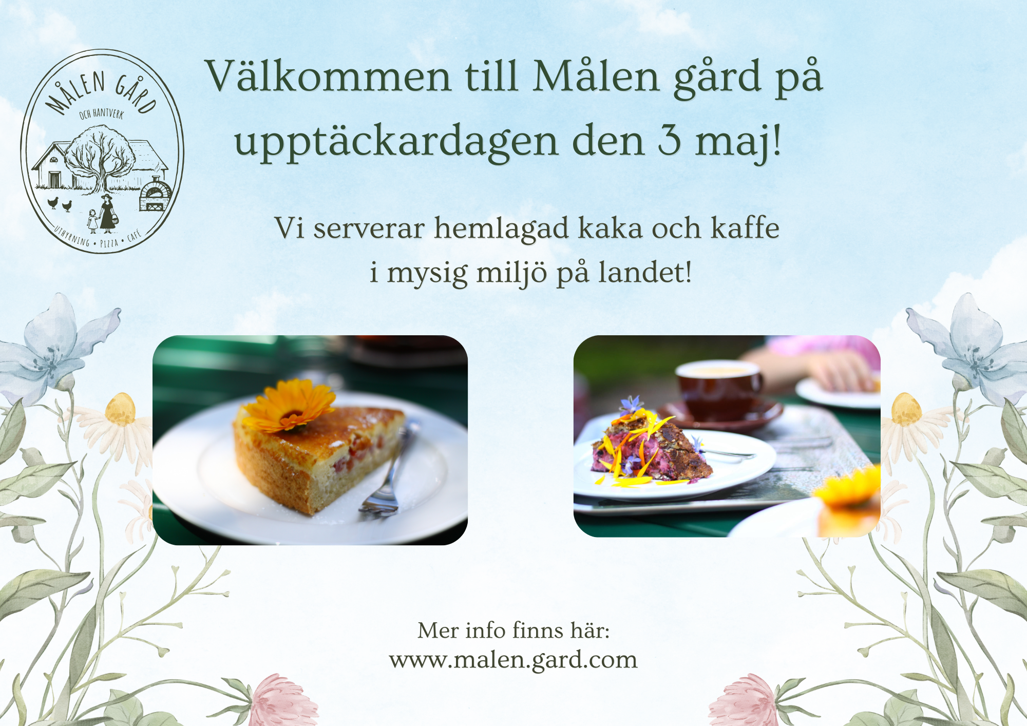 Kom och hälsa på oss i Målen på upptäckardagen den 3 maj! Vi serverar hemlagat kaka och kaffe i mysig miljö på landet.