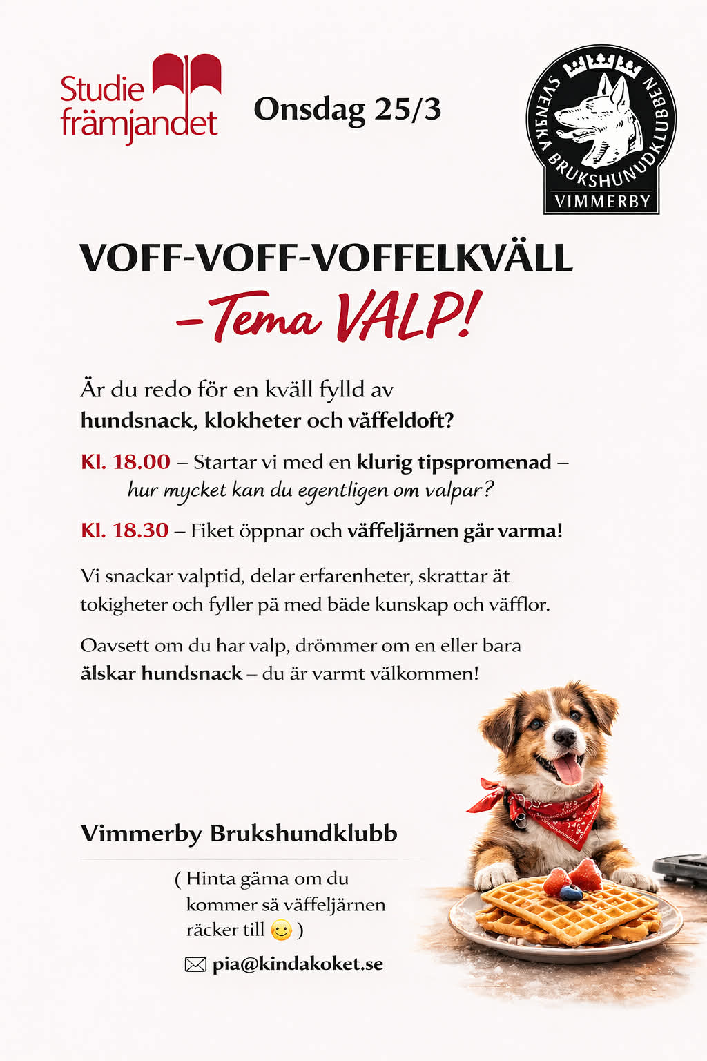 Vimmerby Brukshundklubb bjuder in till ”Voffel-kväll”, tipspromenad, valpsnack och våfflor