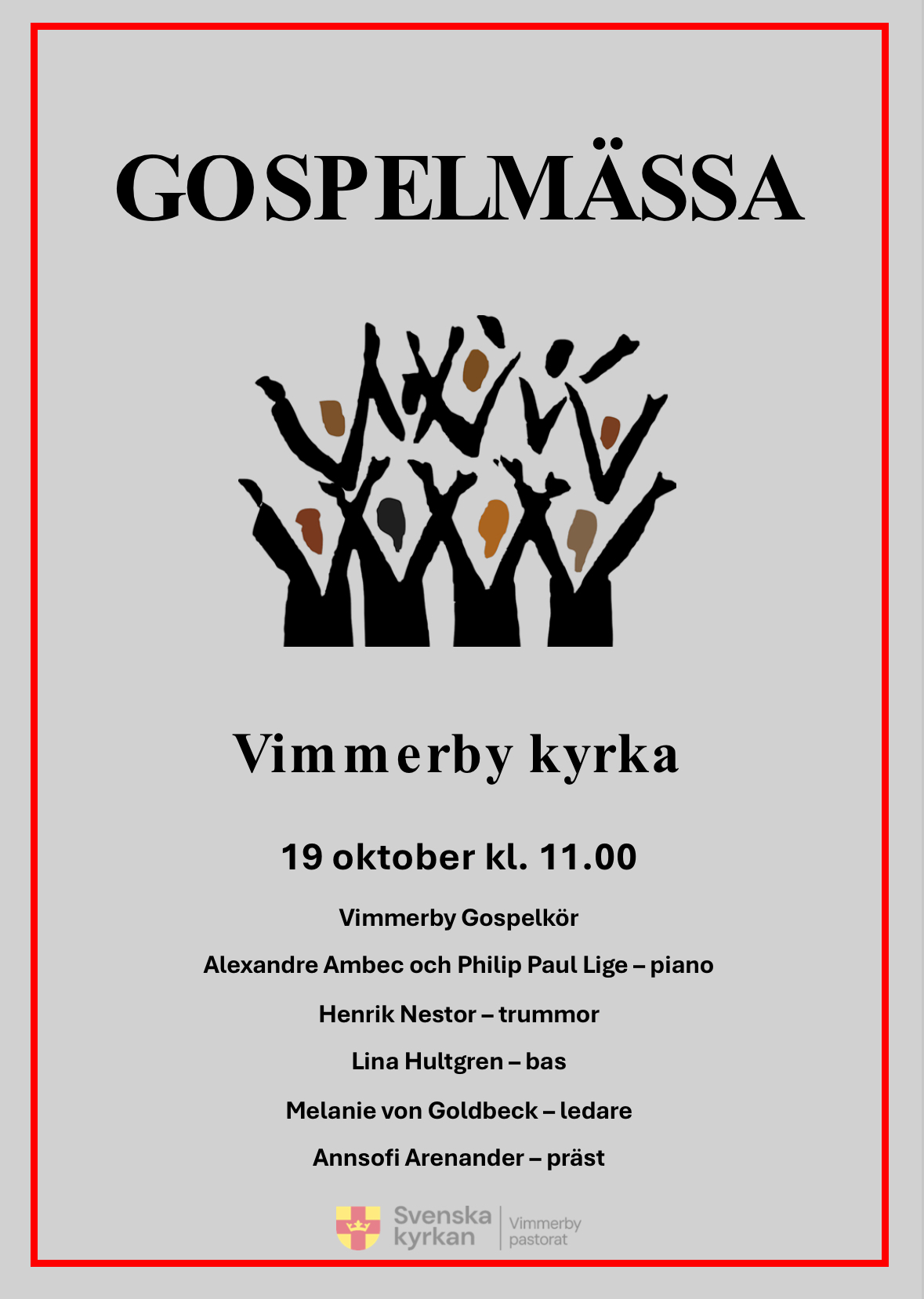 Vimmerby kyrka Sevedegatan 42, VimmerbyKom och var med i vår svängiga gospelmässa!