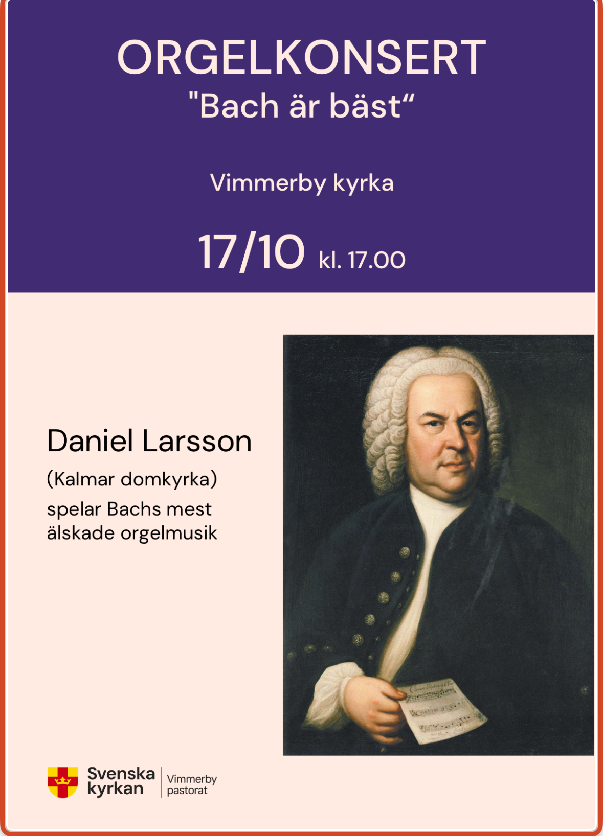 Vimmerby kyrka Sevedegatan 42, VimmerbyOrgelkonsert i Vimmerby kyrka med Kalmars domkyrkoorganist Daniel Larsson.