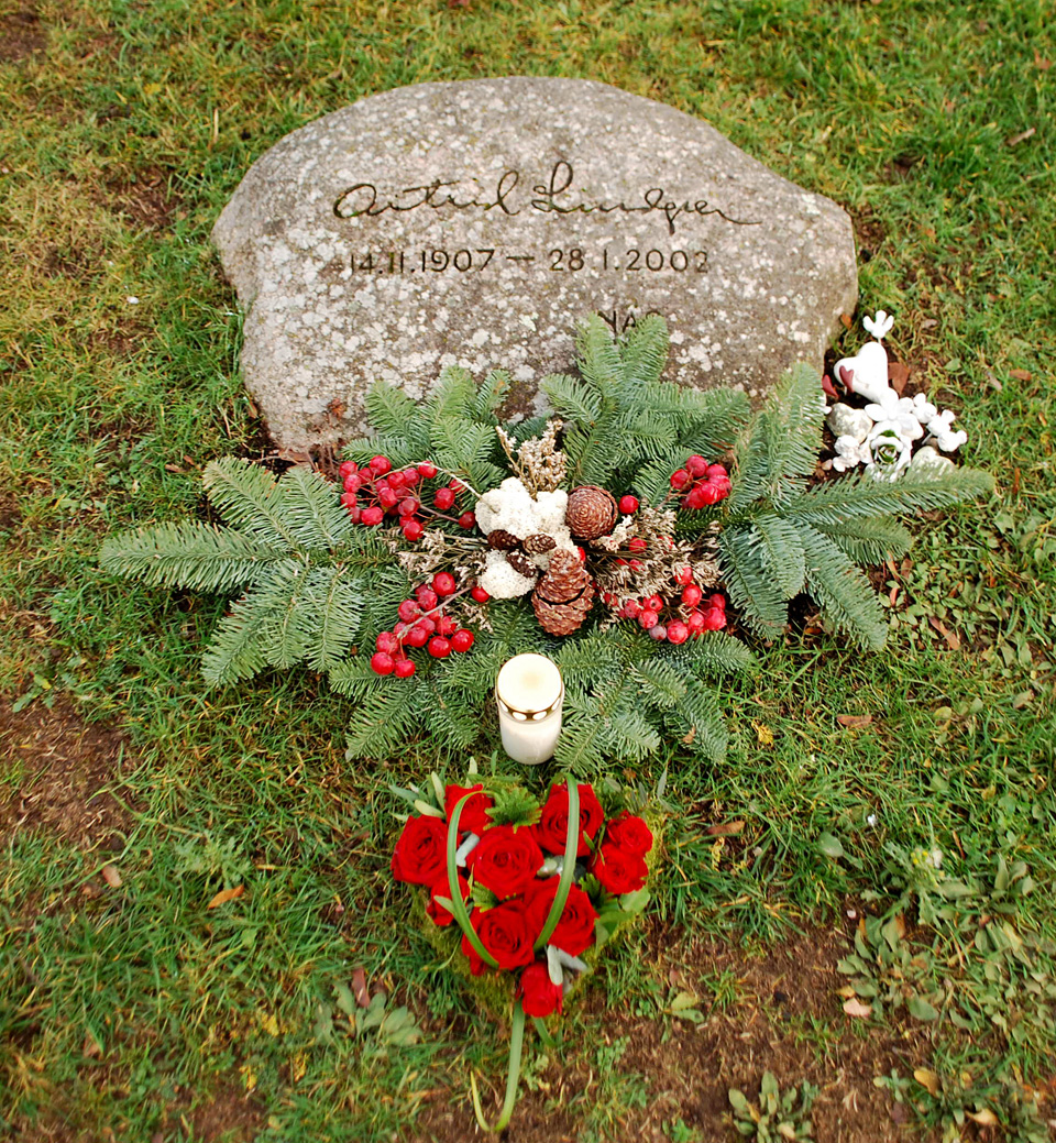 Längst inne på Vimmerby kyrkogård ligger Astrid Lindgren med sina föräldrar, Hanna och Samuel August, och två syskon begravda. Astrid bestämde själv innan sin död 2002 att hon ville begravas i Vimmerby.